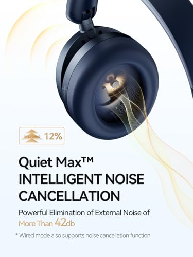 Eintauchen in sofortige Stille: SonoFlow Pro Noise Cancelling Kopfhörer nutzen die eigens entwickelte QuietMax Technologie, um Außengeräusche um über 42 dB zu reduzieren. Mit leistungsstarken Chips und einem speziellen akustischen Design bieten sie eine effektive Lösung für laute Umgebungen wie U-Bahnen und Cafés. Genießen Sie Ihre Musik ohne Ablenkungen und tauchen Sie in eine ruhige Klangwelt ein.