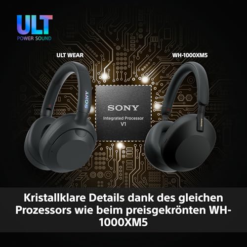 Sony ULT WEAR – Kabellose Kopfhörer mit Noise Cancelling, ULT Power Sound, ultimativer Deep Bass, selbem Prozessor wie WH-1000XM5, klare Anrufe, 30 Stunden Akkulaufzeit, iOS und Android – Schwarz