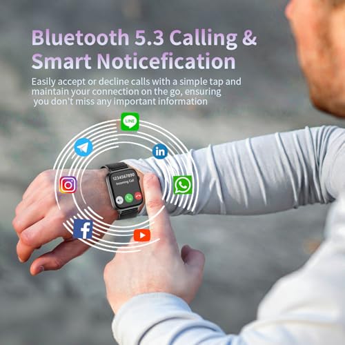 Bluetooth-Anrufe & Smart Erinnerungen: Ausgestattet mit einem integrierten HD-Lautsprecher und Mikrofon ermöglicht diese Smartwatch für Männer und Frauen direkte Anrufe tätigen/entgegennehmen – ideal für Workouts oder hektische Momente, in denen das Smartphone ungeeignet ist. Sie empfängt zudem Nachrichten von Facebook, Whatsapp, Twitter und anderen Plattformen: Heben Sie einfach das Handgelenk, um die Uhr aufzuwecken und stets über die neuesten Informationen informiert zu bleiben