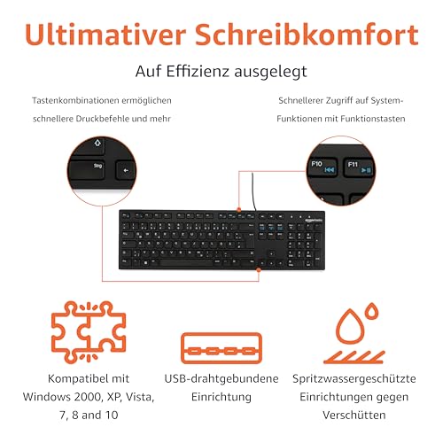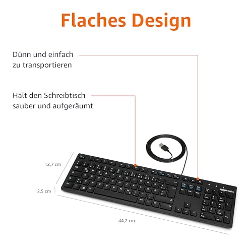 Amazon Basics Tastatur mit DE-Layout, flach, USB-kabelgebunden, Mattschwarz