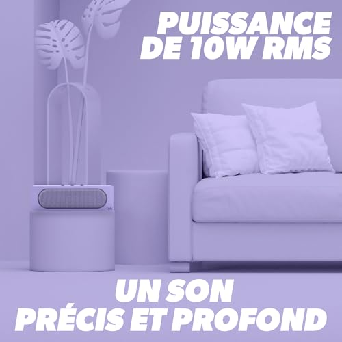 [Leistungsstarker 10-W-Sound] Klarer, ausgewogener Klang dank 10 W RMS, mit präsenten Stimmen und kontrollierten Bässen – ideal für Playlists, Podcasts und Videos. Per TWS mit einer zweiten RAINBOW koppelbar für eine weite, immersive Stereobühne, perfekt für Wohnräume oder das Büro.