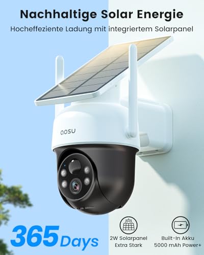 ![aosu 2K Überwachungskamera Aussen Solar Akku 3MP [360° PTZ Panorama, Integrierter Solarpanel] Kabellos PIR-Bewegungserkennung Automatische Verfolgung Farb-Nachtsicht Ton- & Lichtalarm 2-Wege-Audio – Bild 4](https://m.media-amazon.com/images/I/41918ScIXcL.jpg)