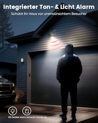 【Intelligente PIR-Bewegungserkennung innerhalb 10 Meter & Automatische Verfolgung】Wenn eine menschliche Bewegung erkannt wird, fokussiert sich die Außenüberwachungskamera Dank PIR-Sensor und smarter Algorithmen automatisch auf die sich bewegende Person und verfolgt sie, um das Ereignis im Detail aufzuzeichnen. Die Überwachungskamera kann verschiedene Bewegungen unterscheiden, wodurch Fehlalarme minimiert werden.