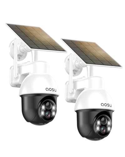 aosu Überwachungskamera Aussen mit Solarpanel, Panorama-PTZ, Automatischer Personenverfolgung, 2K-Nachtsicht, Licht- und Tonalarm, 2-Wege-Audio, kompatibel mit Alexa/Google Assistant(2-Pack)