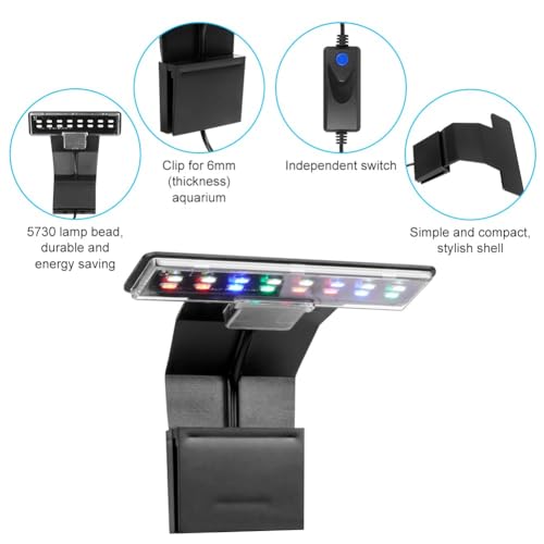 【Nano Tank Light】:Diese Nano-Clip-Leuchte verfügt über einen langlebigen Ein-/Ausschalter am Kabel zur Lichtsteuerung. Kunststoffclips lassen sich problemlos an den meisten randlosen Aquarien mit einer Dicke von bis zu 6 mm befestigen. (Bitte bestätigen Sie die Parameter vor der Bestellung)