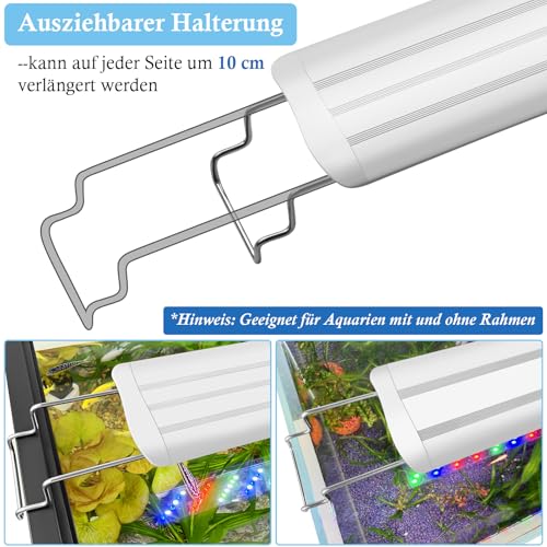 Ausziehbare Halterungen: Mit ausziehbaren Halterungen ausgestattet, kann diese Lampe um 10 cm verlängert werden, wodurch sie für Pflanzen und Süßwasser Aquarium mit einer Länge von 30-45 cm geeignet ist. Einfache Installation an den meisten Aquarien, mit oder ohne Abdeckung, mit oder ohne Rahmen.