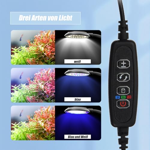 GERUI Aquarium Licht, Clip-on Aquarium Lampe mit Weiß und Blau Licht, 7W für 20-40 cm Aquarien mit Timer und Memoryfunktion Aquarium Beleuchtung geeignet für Wasserpflanzen und Süßwasser Aquarien