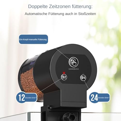 Vereinfachte bedienung: Das klare Ein–Prinzip vereinfacht die Fütterung für Besitzer Fische. Mit zwei Timer-Einstellungen und automatischen 12/24-Stunden-Zyklen sorgt das Gerät für eine stressfreie Versorgung der Wasserbewohner. Perfekt für den zuverlässigen Einsatz in der Wohnung oder im Büro, wo Einfachheit im Alltag zählt.
