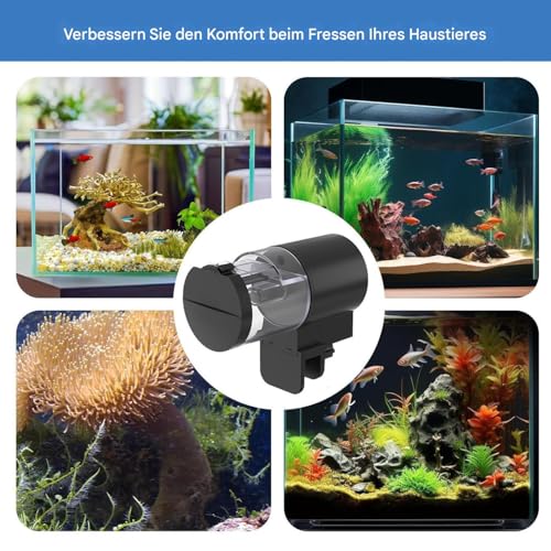 Vielseitige Fütterungslösung: Der Fischfütterer unterstützt Granulat, Pulver und Stäbchenfutter, was Benutzern ermöglicht, verschiedene Fischspecies mühelos zu füttern. Diese vielseitige Fütterungslösung fördert ein gesünderes Aquarienleben ohne zusätzlichen Aufwand. Die automatische Funktionsweise stellt regelmäßige Mahlzeiten sicher, trägt zu vitalen Fischen bei und unterstützt ein ausgeglichenes Ökosystem in Ihrem Aquarium. Die Kompatibilität mit unterschiedlichen Futtersorten wie Pulver, Gra
