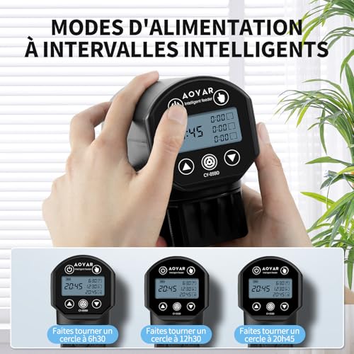 【Intelligente und manuelle Fütterungsmodi】 Der automatische Fischfutterautomat von Aoyar verfügt über 3 kostenlose Intervallfütterungsmodi. Stellen Sie 1–3 Arten von Fütterungsmodi über die Tasten „⚙“ und „▲“ oder „▼“ ein. Bieten Sie Ihren Fischen eine individuelle Ernährung. Genießen Sie den Spaß Füttern Sie Fische in Ihrer Freizeit über manuelle Fütterungsmodi. Auf dem LCD-Bildschirm können Sie die Fütterungszeit/-kreise deutlich sehen und die Batterieleistung überwachen. (Kleine Fische werden alle 24 Stunden gefüttert.)
