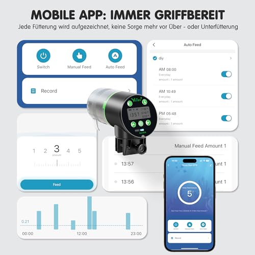 🐟Automatische Aufzeichnung der Fütterungshistorie: Die fischfutter automat APP zeichnet alle Fütterungsdaten mit der genauen Fütterungsmenge auf, damit Sie sie jederzeit und überall einsehen können. Haben Sie keine Angst, dass die Fütterung nicht funktioniert oder Sie vergessen, Ihre Fische zu füttern.