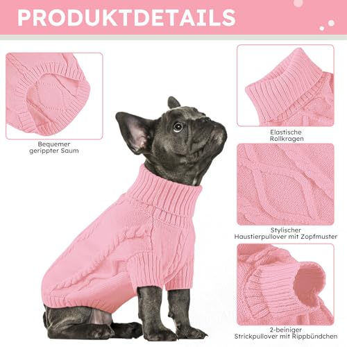 Queenmore Dackel Pullover Hundepullover Kleine Hunde Wärme Hundepulli Strick Pullover Hund Strickmantel Mit Zopfmuster Hundepullover Französische Bulldogge Bulldog Chihuahua Katzen Corgi, Rosa, S