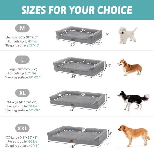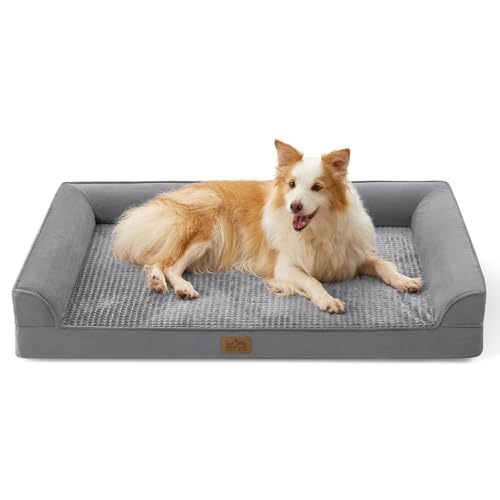 Cosy Kiss OrthopäDisches Hundebett Für Große Hunde, XL-Hundesofa FüR GroßE Hunde, StüTzende Schaumstoffpolsterung Mit Wasserdichtem Bezug Und Rutschfester Unterseite, U-Form, Grau
