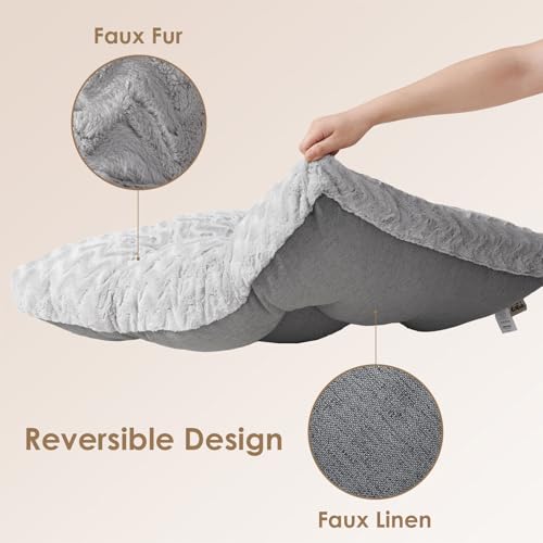 EHEYCIGA Hundebett Grosse Hunde Waschbar, 89x58cm, Hundekissen Flauschig für Mittelgroße Hunde, Kuschelig Umkehrbare Hundematte mit Kunstpelz und Kunstleinen, Grau