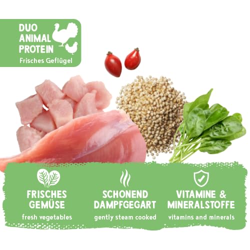 Vollwertiges Nassfutter mit 100 Prozent Pute und Huhn (Duoprotein) für Geflügelliebhaber