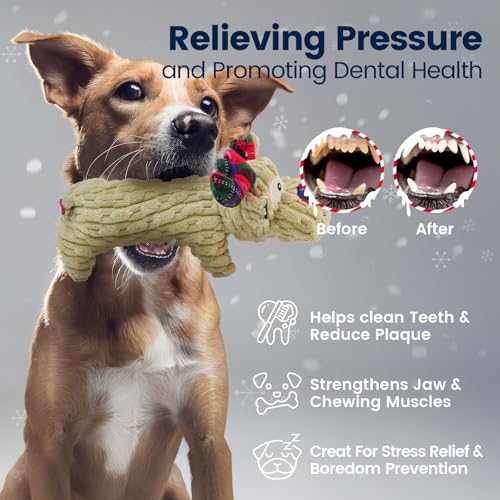 ROSAUI Hundespielzeug Weihnachten, Quietschend Spielzeug für Große Mittlere Kleine Hunde. Geschenke Kuscheltier Rentiere, Hunde