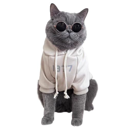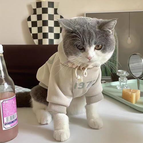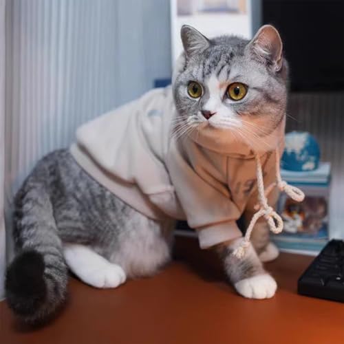 KASESSS Katzenbekleidung, Sweatshirt Kostüm Für Katzen, Katzenbody mit Kapuze, Langärmlige Katzen Kleidung, Cat Clothing mit Dünnem Fleece, Katzens-Winterkleidung für Katzens Kleine Hunde Aprikose M