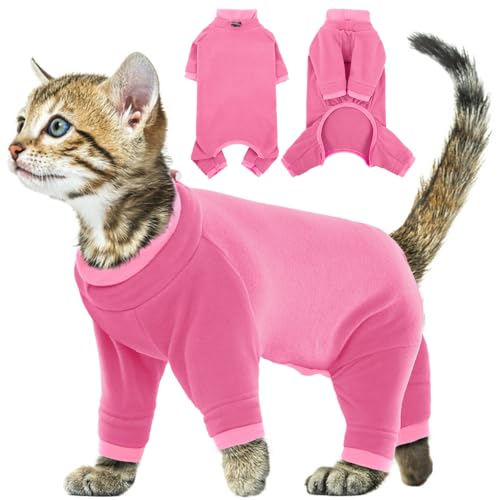 Katzenbody mit Beinen, Kitten Kleidung Winter Medical Pet Shirt Katze Cat Fleece Jumper Cat Body After Surgery with Leg(Rosa, XS)