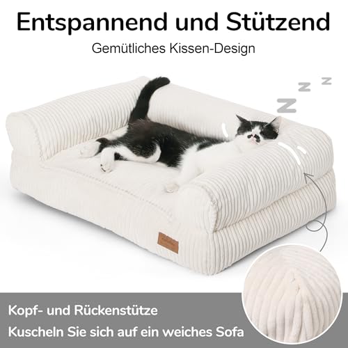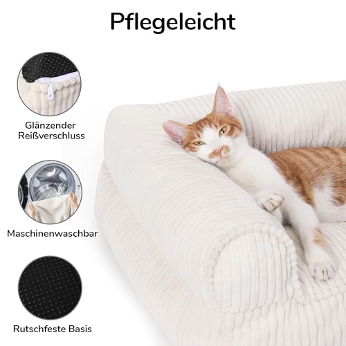 FUKUMARU Katzensofa Bett, Corduroy Gemütliches Katzenbett für drinnen mit abnehmbarem waschbarem Bezug, Stützendes Anti-Rutsch Hundebett Sofa für kleine Hunde, 72 x 52 x 22 cm, Mittel, Creme