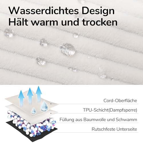 Premium Stoff für Komfort: Dieses Hundebettsofa ist aus weichem Cordstoff gefertigt, der hervorragende Wärme bietet und es zu einer idealen Wahl für kalte Jahreszeiten macht. Das Innere des Hundebetts ist mit einer wasserdichten TPU-Beschichtung ausgekleidet, die effektiv verhindert, dass Speichel oder Urin durchdringen, und das Innere schützt.