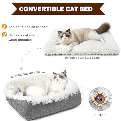 MAIYADUO Weiches Katzenbett Waschbar 42×36 cm Plüsch Haustierbett für Katzen und Kleine Hunde, 2 in 1 Katzenbett Schlafsack Warmes Haus Katzenkissen Katzendecke Waschbares Nest Bett für Katzen