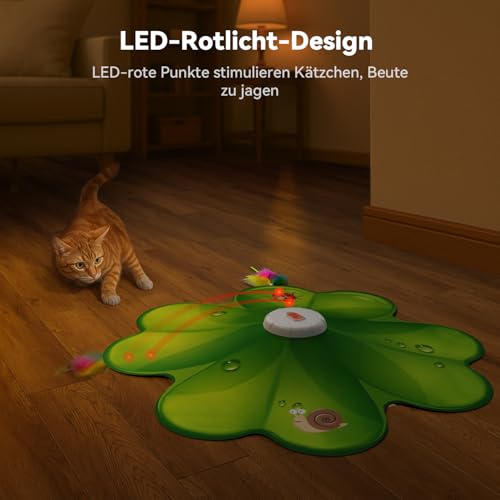 【2-in-1 Interaktives Versteckspiel】Das FEELNEEDY interaktive Katzenspielzeug imitiert Federangeln unter Decken und stimuliert die natürlichen Jagdinstinkte und die Neugier von Katzen. Bewegliche LED-Lichter fördern die visuelle, akustische und körperliche Aktivität. Ermutigt zu aktivem Spiel (Springen, Jagen), um Langeweile zu bekämpfen, Ängste zu reduzieren und Fettleibigkeit bei Wohnungskatzen vorzubeugen