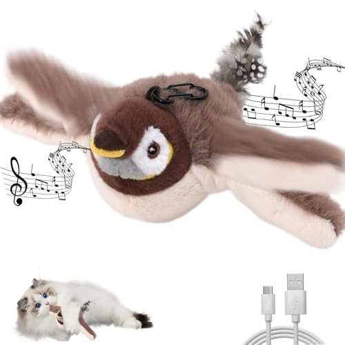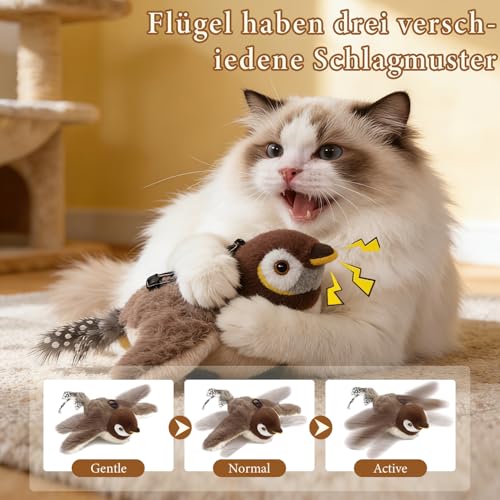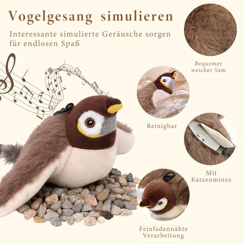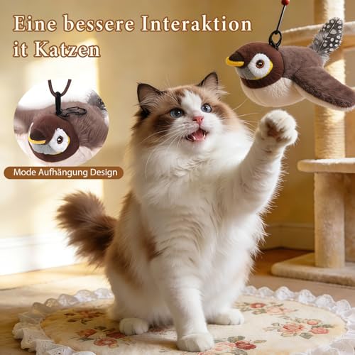 【Simuliertes zwitscherndes sich bewegendes – Cat Toys】Machen Sie die Spielzeit spannender mit einem pelzigen Spatzenspielzeug, das realistische Zwitschergeräusche macht. Die realistischen Geräusche rufen jedes Schlagen, Beißen, Kauen und Jagen hervor und machen es für Ihre Katze unwiderstehlich. Diese interaktive Funktion sorgt für zusätzliche Spannung beim Spielen.Sind einfach zu montieren und hängen wie echte Vogel fliegen in der Luft. Es macht eine Menge Spaß