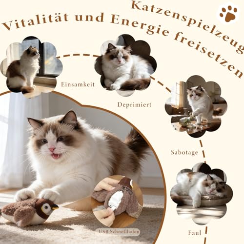 Katzenspielzeug Selbstbeschäftigung Elektrisch Interaktives Katzenspielzeug Vogel Berührungsaktiviertes Katzen Zubehör Intelligenz Aufladbares Katzen Spielzeug Katzenzubehör mit Katzenminze für Katze