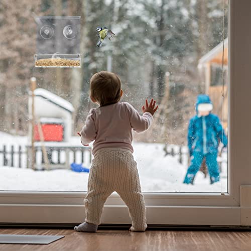 Relaxdays Vogelfutterhaus, Vogelfutterspender aus Acryl, Vogelhaus für Fensterscheibe, 16,5 x 15 x 7,5 cm, transparent