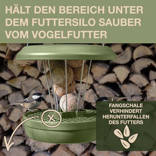 ♻️ Futterstation mit Auffangschale: Die intelligente Auffangschale des Vogelfutterspenders verhindert, dass Futterreste auf den Boden fallen – für weniger Verschwendung, mehr Ordnung und hygienisches Füttern.