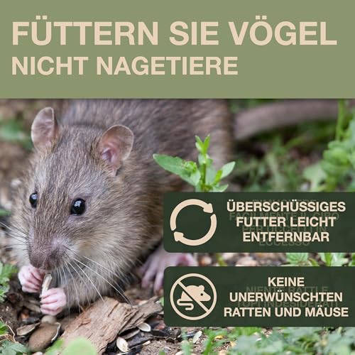 🐀 Maus- und Rattensicheres Meisenknödelhaus: Spezielles Aufhänge-Design und innovative Auffangschale verhindern, dass Mäuse und Ratten zum Futter gelangen können – füttern Sie ausschließlich Wildvögel, keine Nagetiere. Ideales Futterhaus für Garten und Balkon ohne Schädlingsbefall.