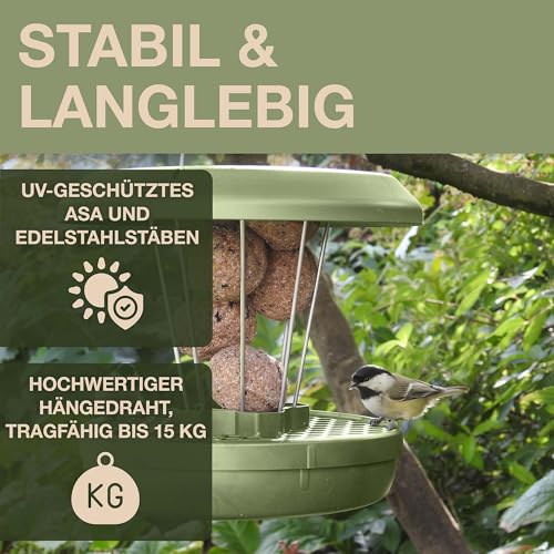 🛡️ Wetterfestes Vogelfutterhaus zum Aufhängen: ASA-Kunststoff mit UV-Schutz und rostfreie Edelstahlstäbe für jahrelangen Einsatz in allen Jahreszeiten – perfekt als Vogelhaus für Meisenknödel.