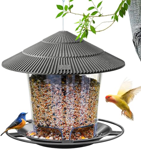 【Wetterfest und Sonnengeschützt】Der großflächige Deckel des Futterhaus für Vögel hat einen Durchmesser von 16.5 Zentimetern und ist mit traufartigen Rillen versehen, die die Getreide vor Sonnenlicht und gefrierendem Regen, Schnee und Eis schützen. Das Vogelfutterstation ist aus hochwertigem PP+PS-Material hergestellt, beständig gegen Sonnenlicht und UV-Strahlen, langlebig und dauerhaft.