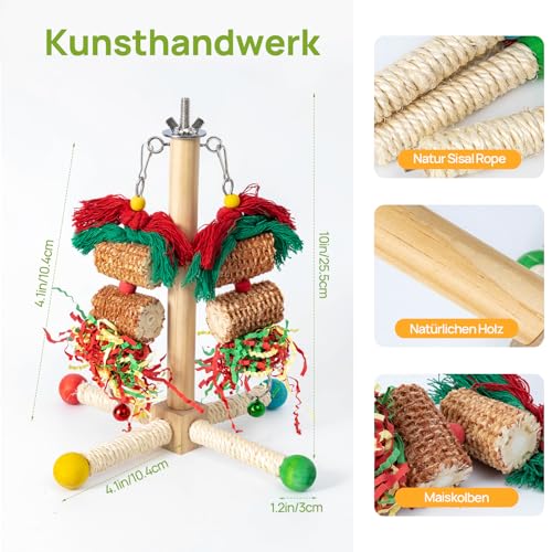 GingerUPer Wellensittich Spielzeug, Vogelspielzeug Für Vögel,Natürliches Maiskolben,Papagei Kauspielzeug Buntes Sicheres Holz Block Schaukel zum Kauen für Alle Papageien & Vogel (Grün)