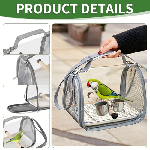 Vogel Transportbox mit Holzstab, Faltbare Leichter Rucksack für Vögel mit Stehstange und Tablett Vogelkäfig für Papageien Sittiche Kleintiere für Reisen Wandern Camping (26 x 19 x 19.5 cm)