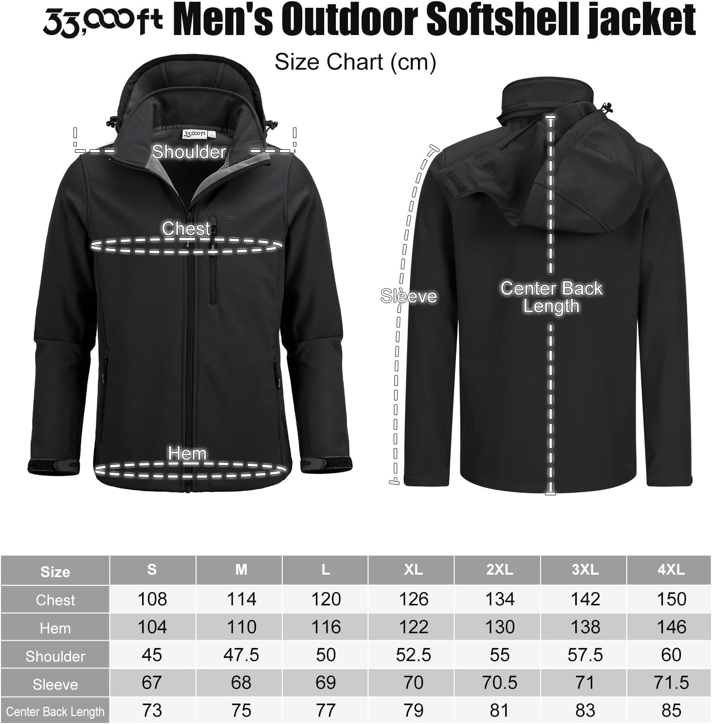 33.000ft Softshelljacke für Herren, wasserdichte Winterjacke, winddicht, warm, mit Fleece gefüttert, Windjacke, Funktionsjacke, Outdoorjacke für Wandern, Radfahren, Camping