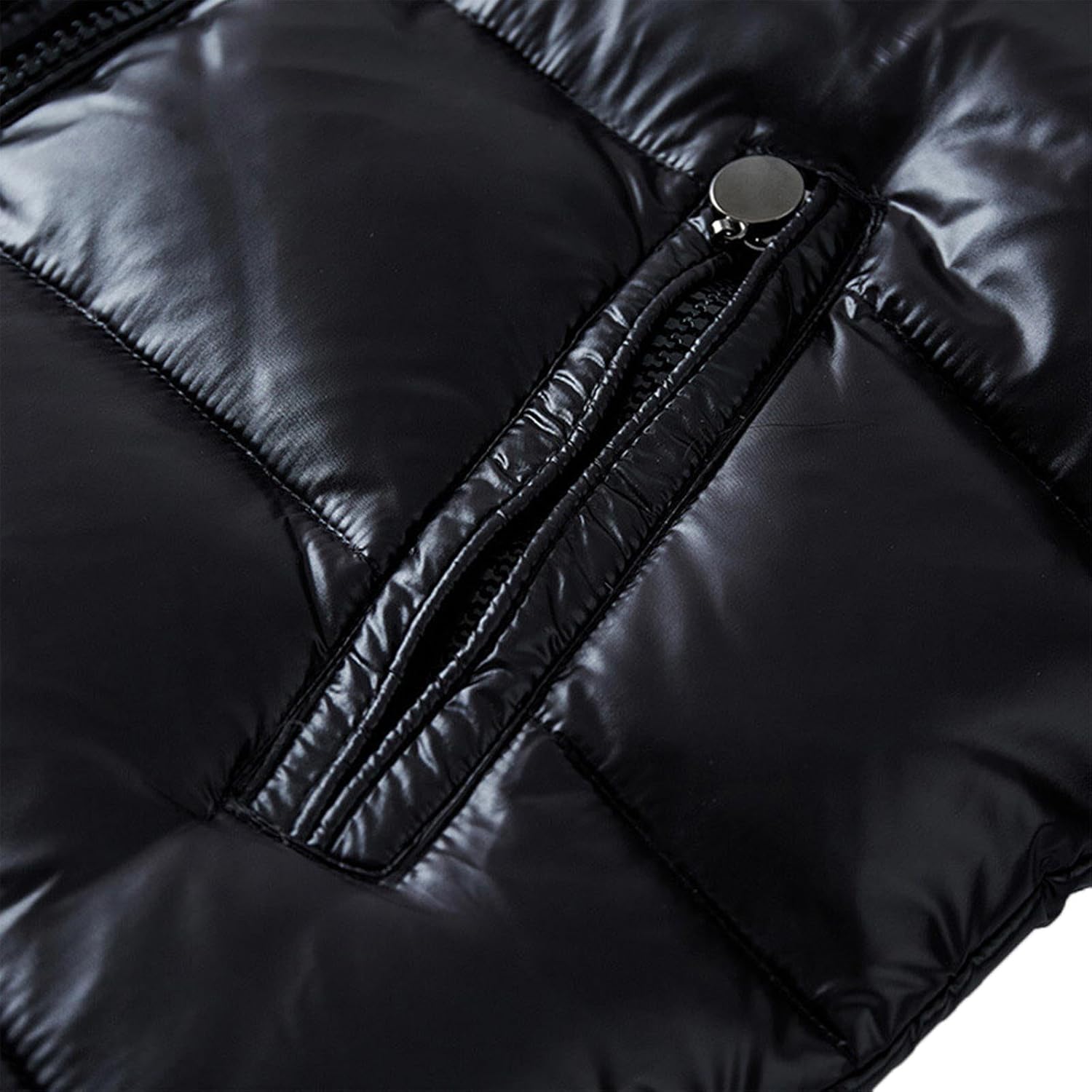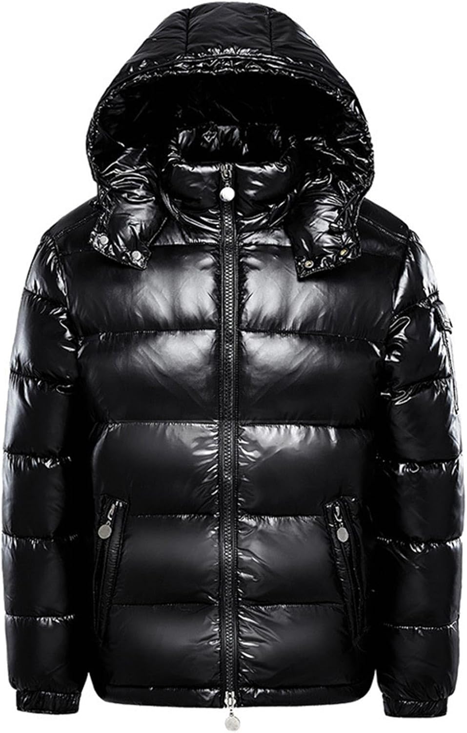 Glänzende Daunenjacke für Herren und Damen, warmer Parka-Mantel mit Kapuze, Winter-Schnee-Daunen, dicke Jacken, metallisch glänzende Winterjacke, Schwarz, langärmeliger Wintermantel mit Reißverschluss