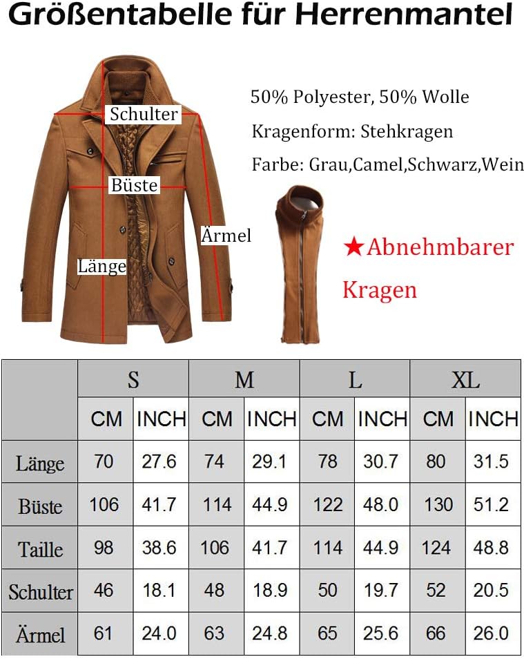Further information about men’s warm wool coat style 6: