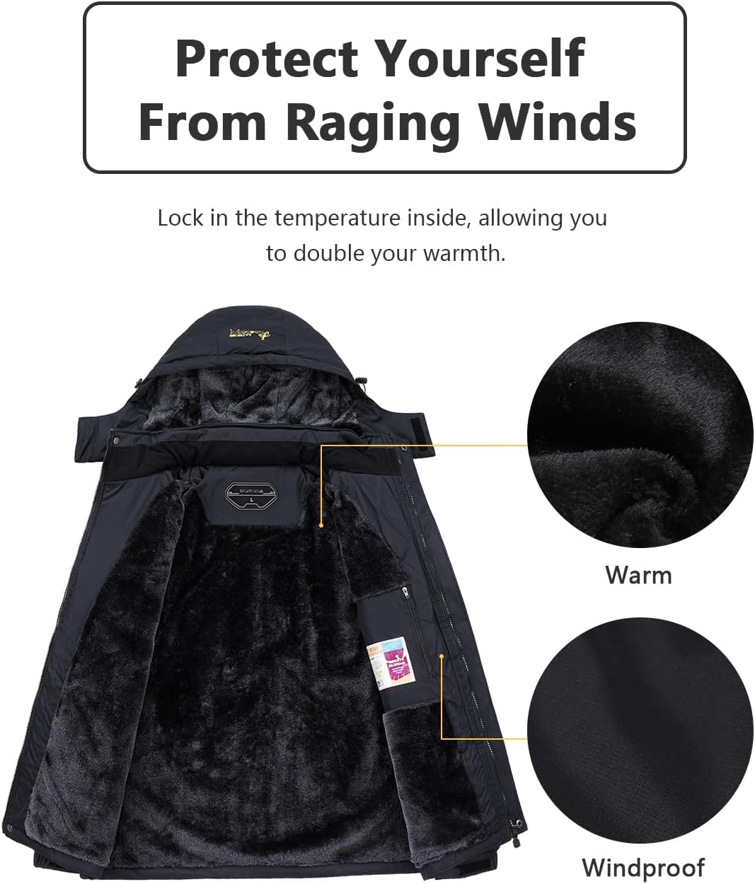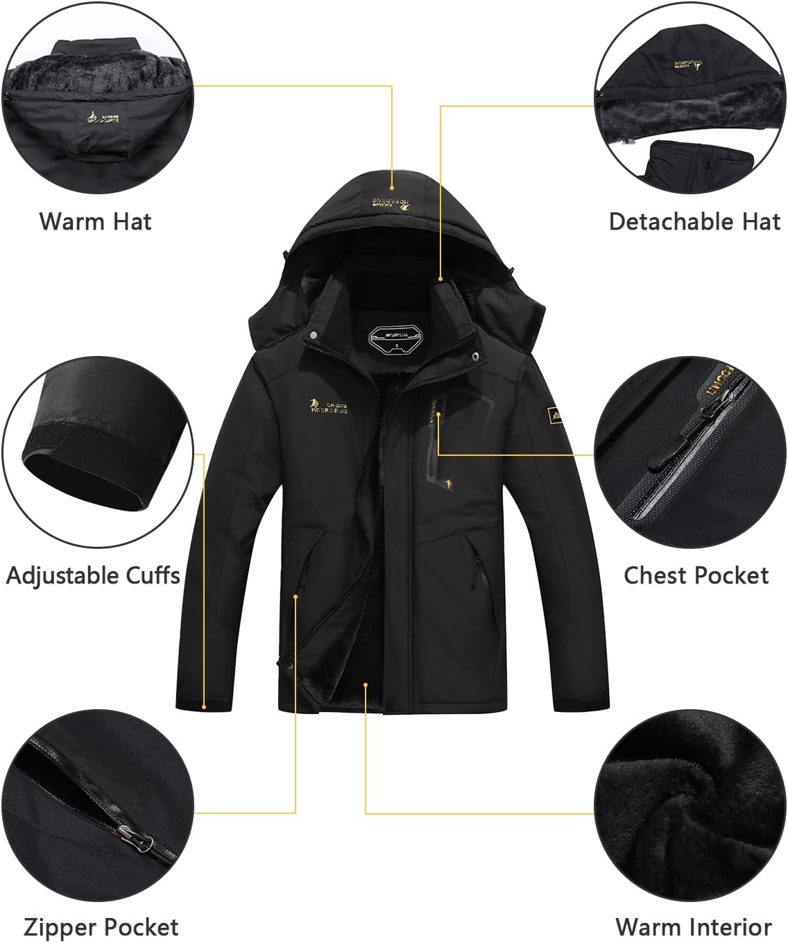 Men’s Ski Jacket Winter Jacket Waterproof Coat Windproof Cotton Fleece Lined Jacket Multifunctional Pockets