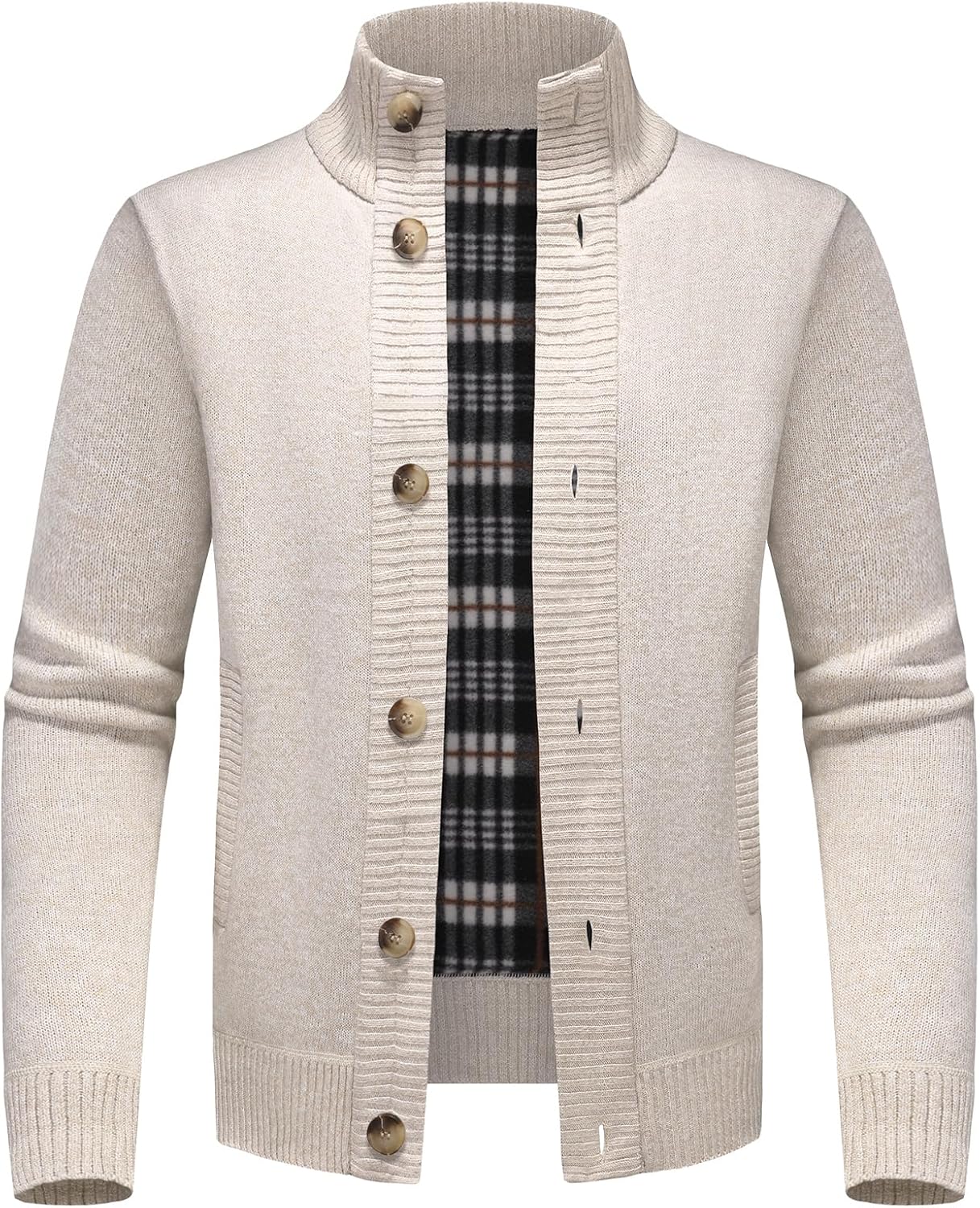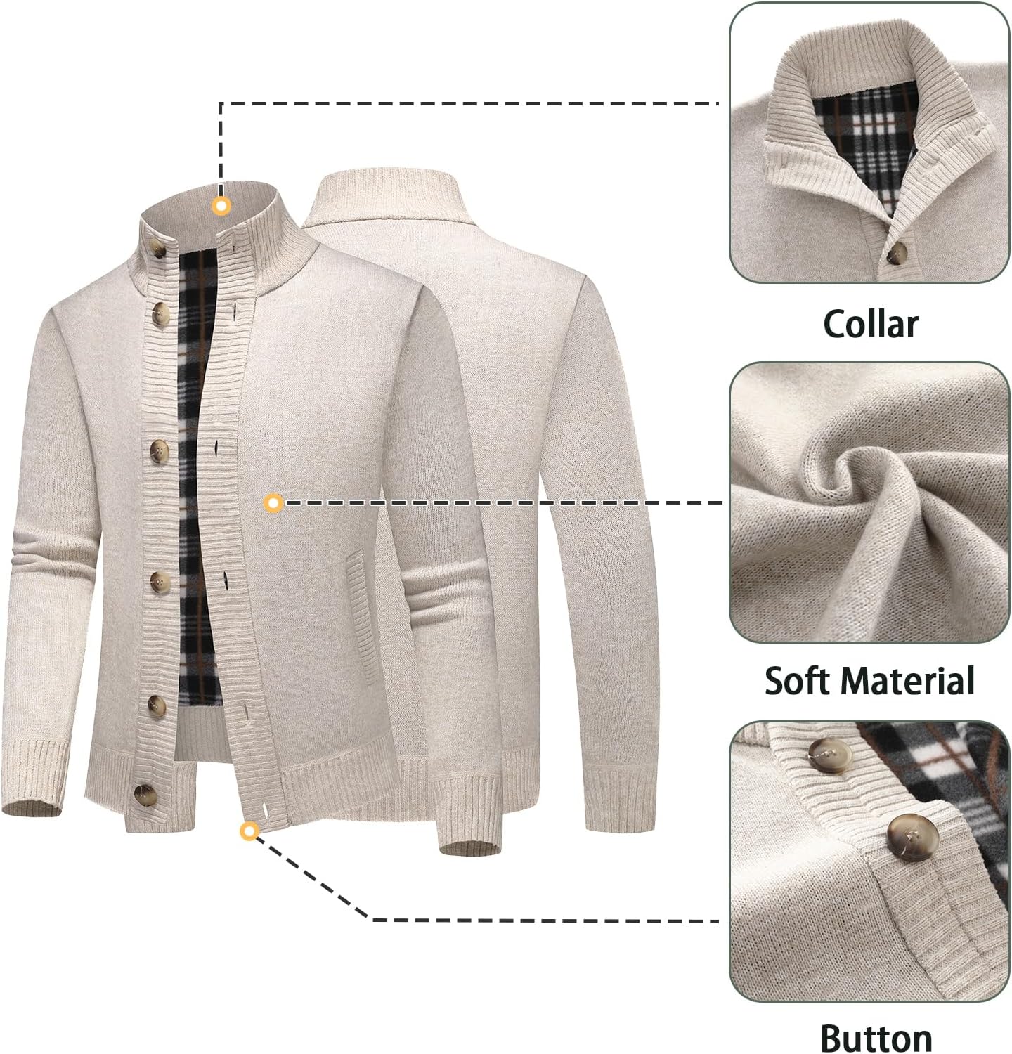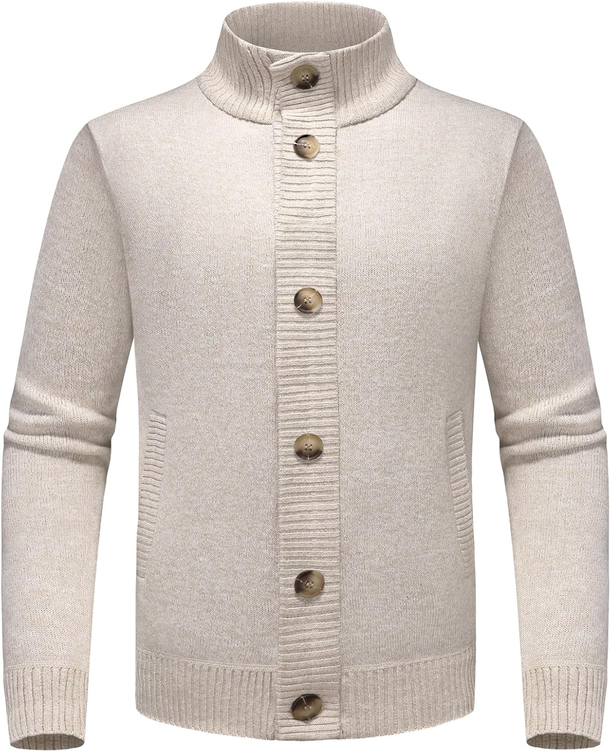 Men’s Cardigan Warm Thick Knitted Jumper with Pockets Single Breasted Autumn and Winter Casual Men’s Jacket