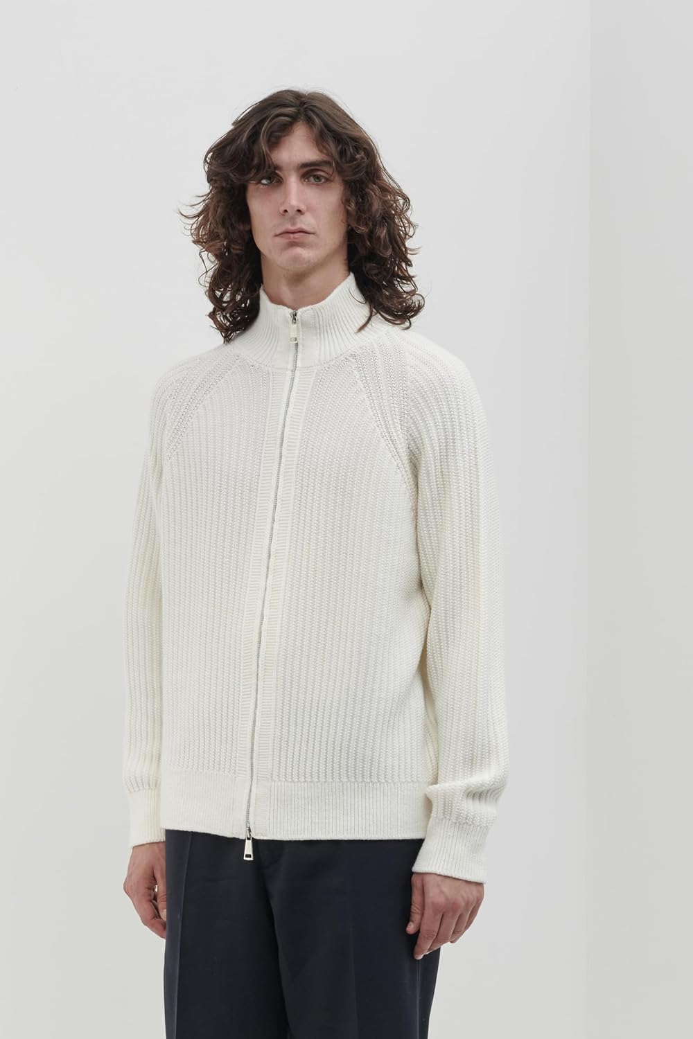 Knitted zip jacket, designed using advanced knitting techniques, made with 100% Italian merino wool yarn. Made in Italy shirt through sustainable processes and great attention to the people involved in the production phase, with constant attention to the end quality. Essential and contemporary, casual-chic silhouette, suitable for any occasion.