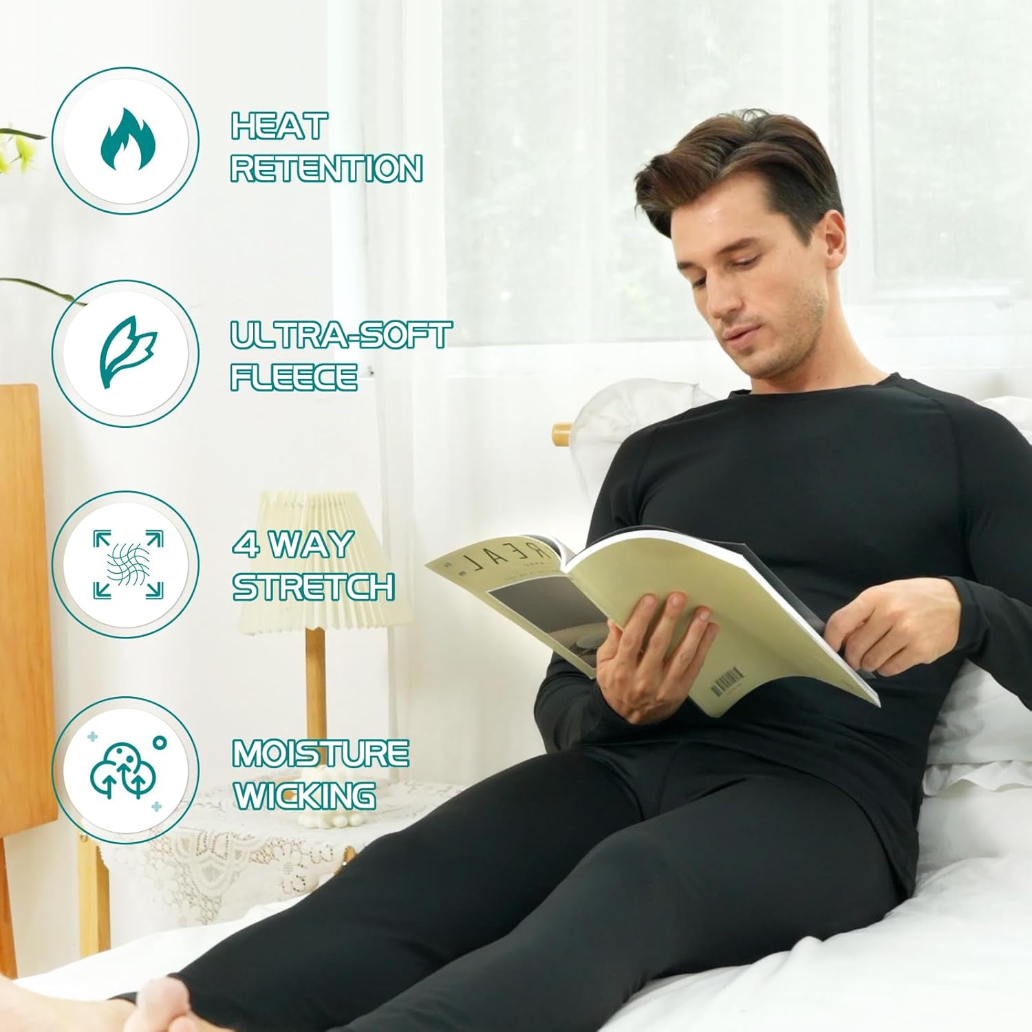 Herren Thermounterwäsche, Atmungsaktive Funktionsunterwäsche, Skiunterwäsche Set mit Innenfleece, Winter Lang Thermo Skiunterwäsche Set für Joggen, Radfahren, Fußball, Skifahren, Motorrad