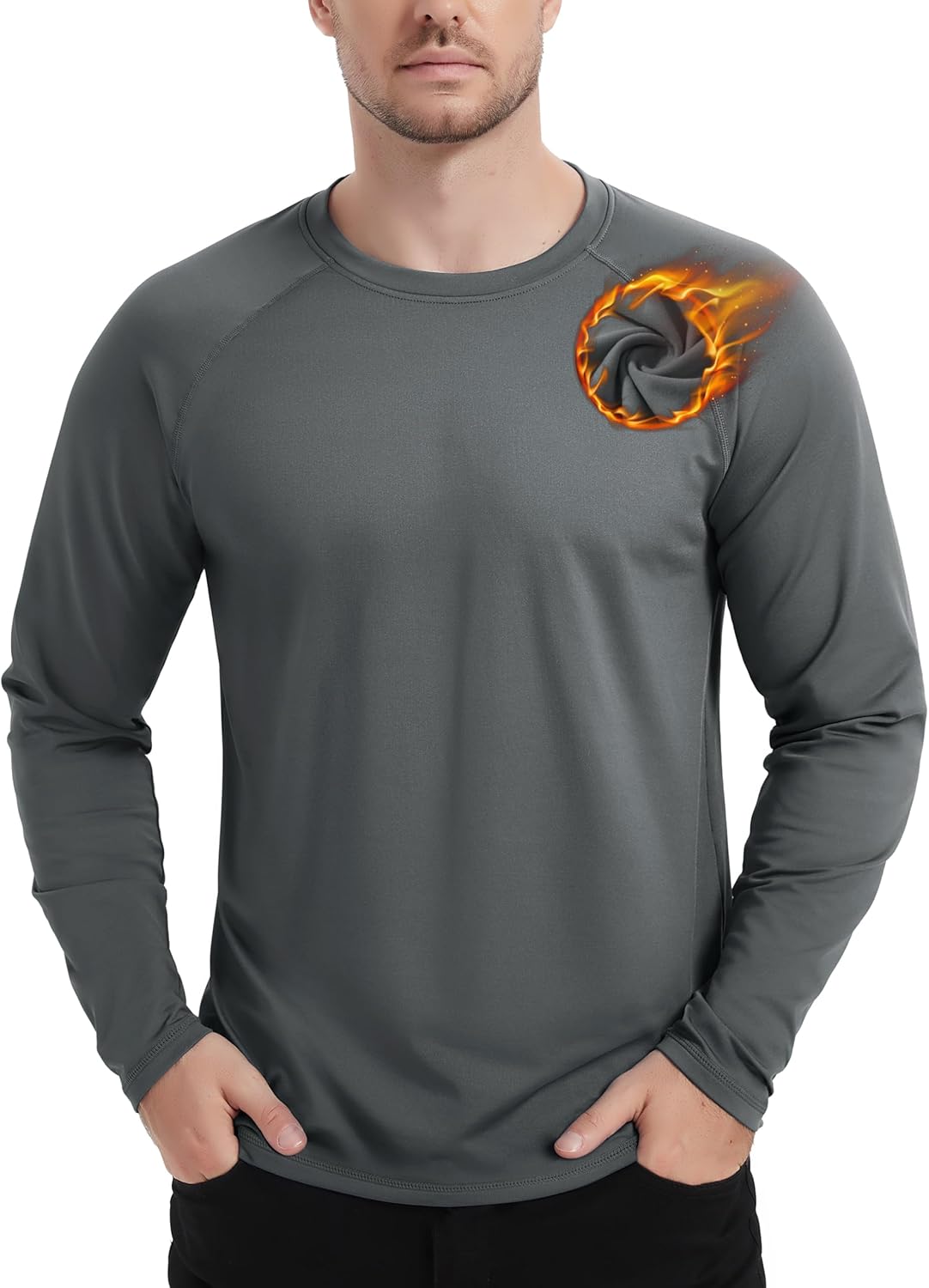 TACVASEN Thermounterwäsche Herren Innenfleece Sport Langarmshirt Atmungsaktiv Warm Skiunterwäsche Fleecepullover Stretch Funktionsshirt Winter Basic Thermoshirt