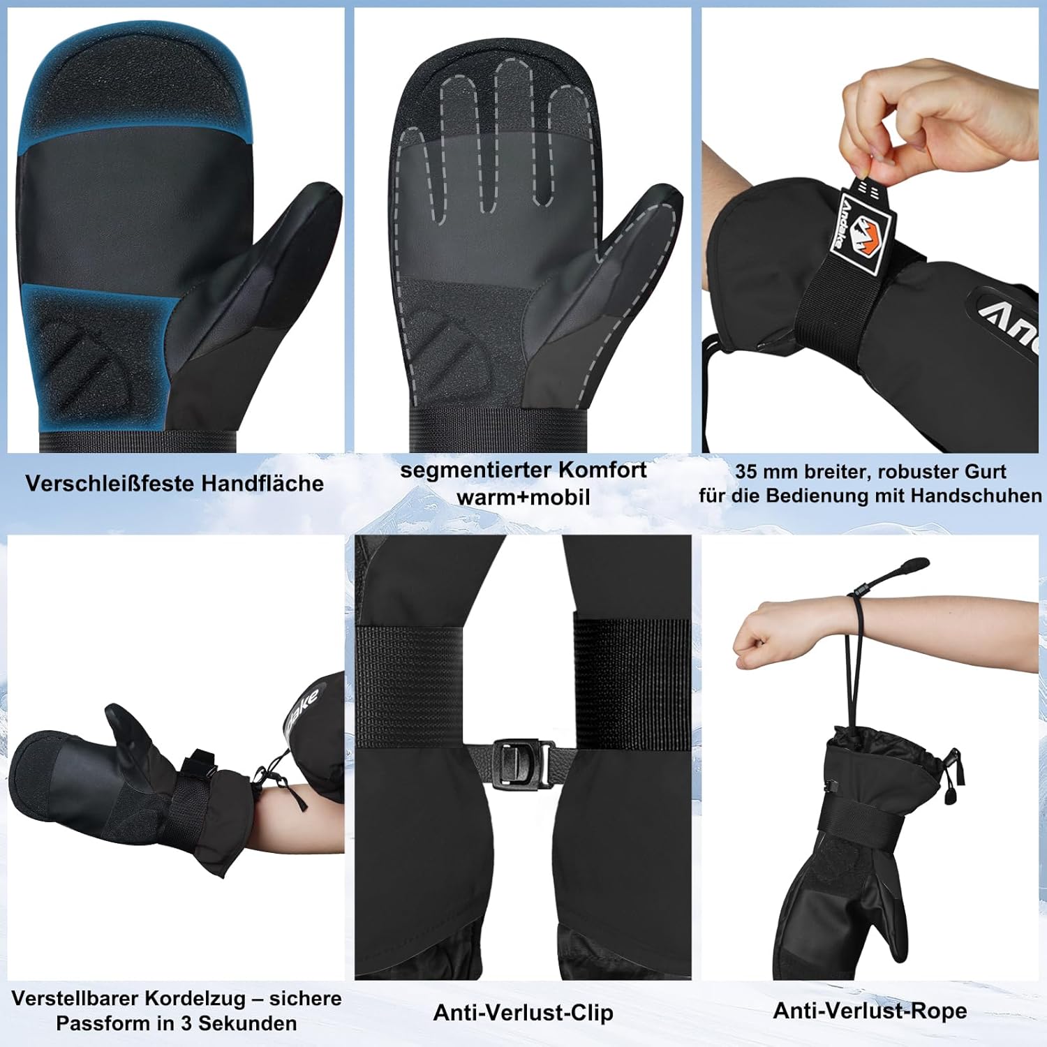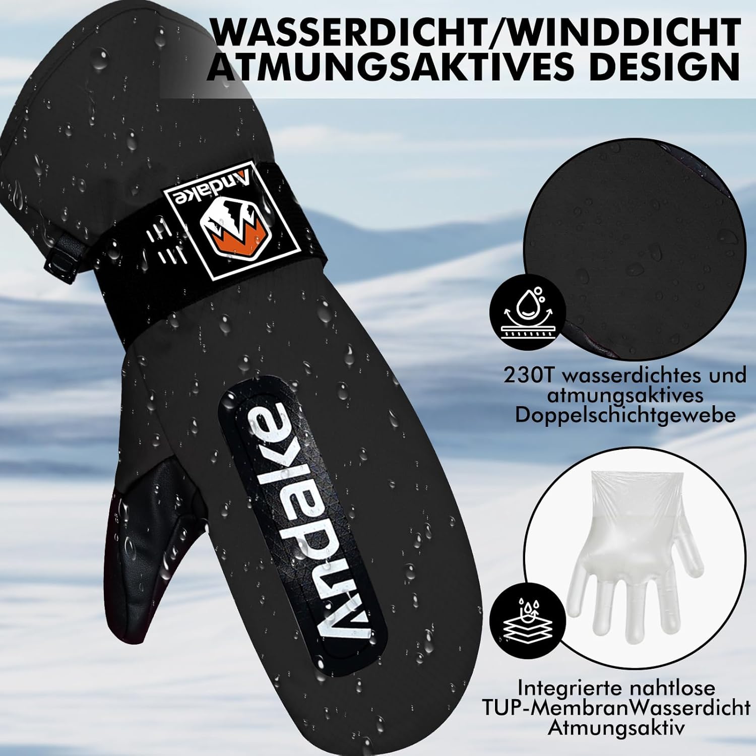 Andake Skihandschuhe, warme, wasserdichte, winddichte Winterhandschuhe für Skifahren, Snowboarden, Reisen, Wandern und Wintersport im Freien