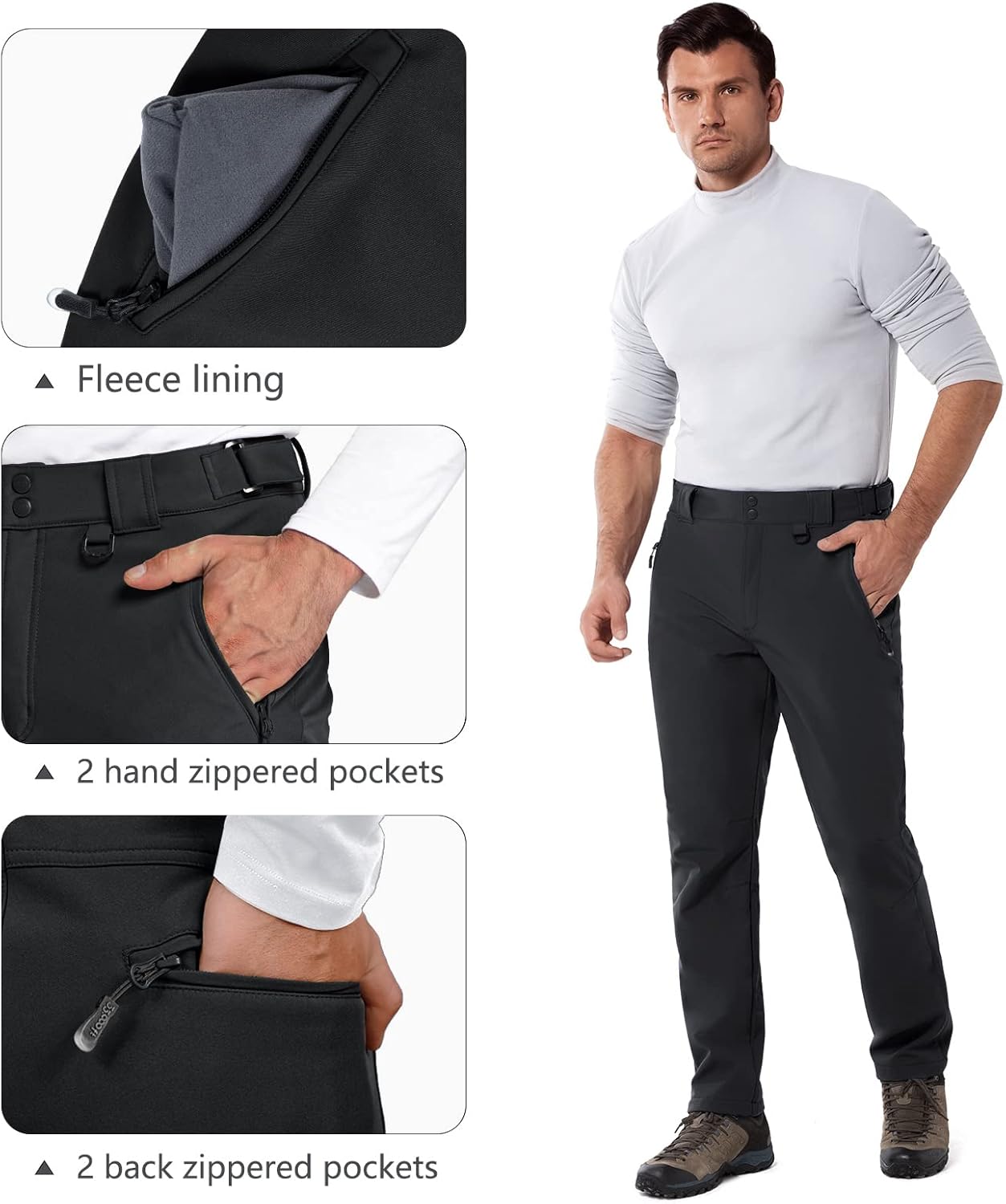 33,000ft Outdoor Trousers, Men’s Softshell Trousers, Waterproof, Windproof Ski Trousers, Warm, Fleece Lined Work Trousers, Winter Trekking Trousers, Hiking Trousers