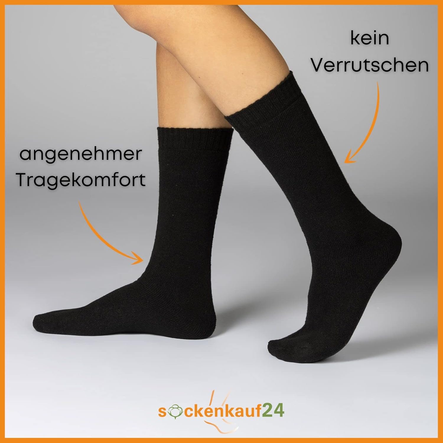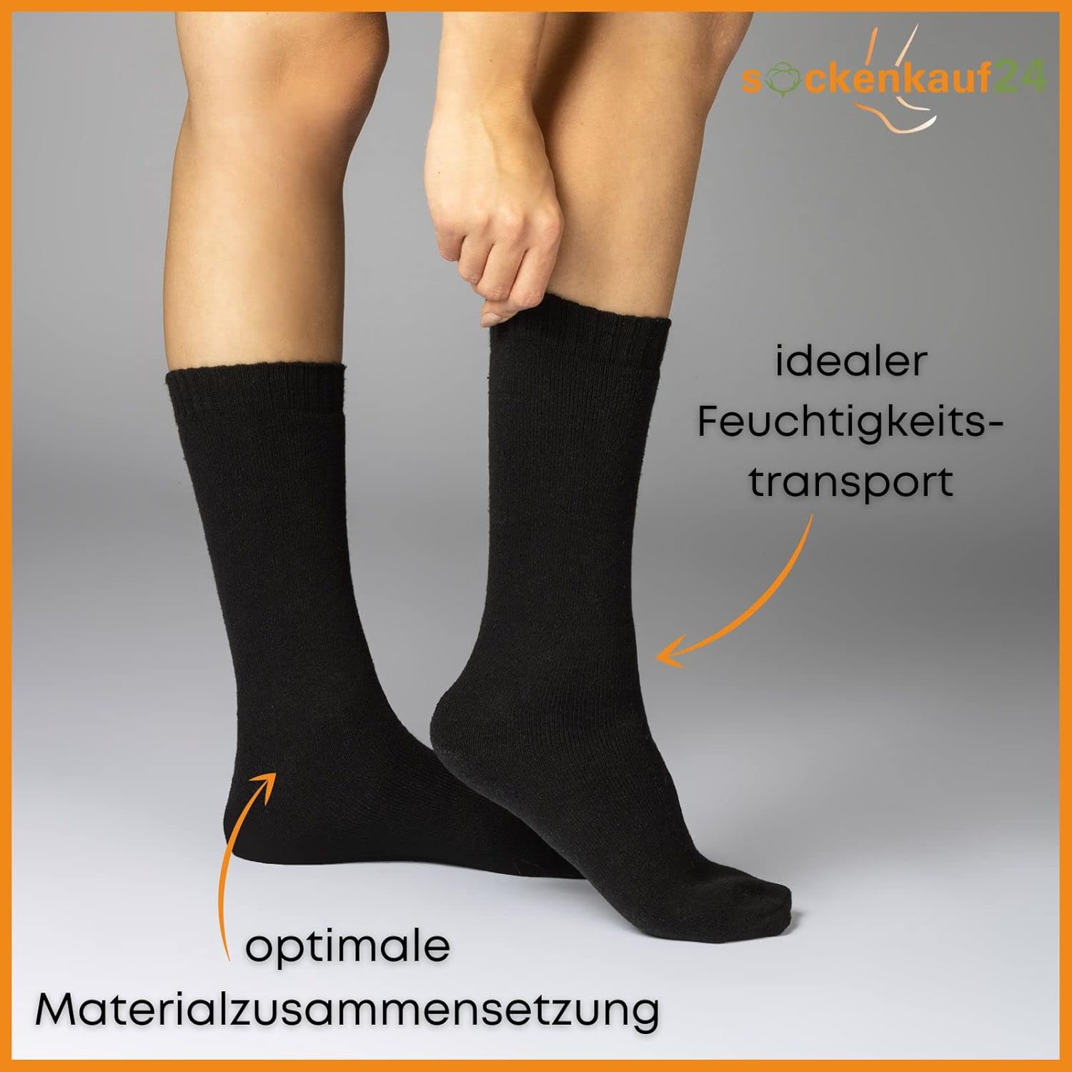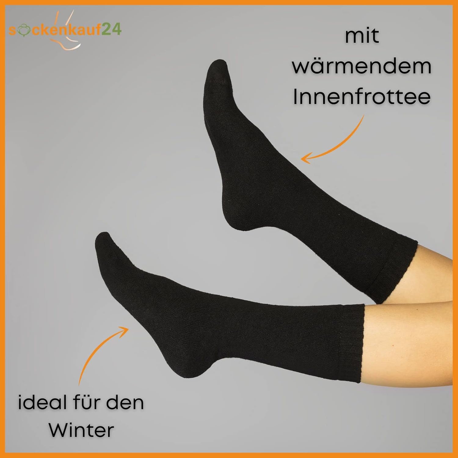 Sockenkauf24 Pack of 6, 12, 24 Pairs of Thermal Socks for Men and Women Full Terry Cloth Black Cotton with Comfortable Cuff
