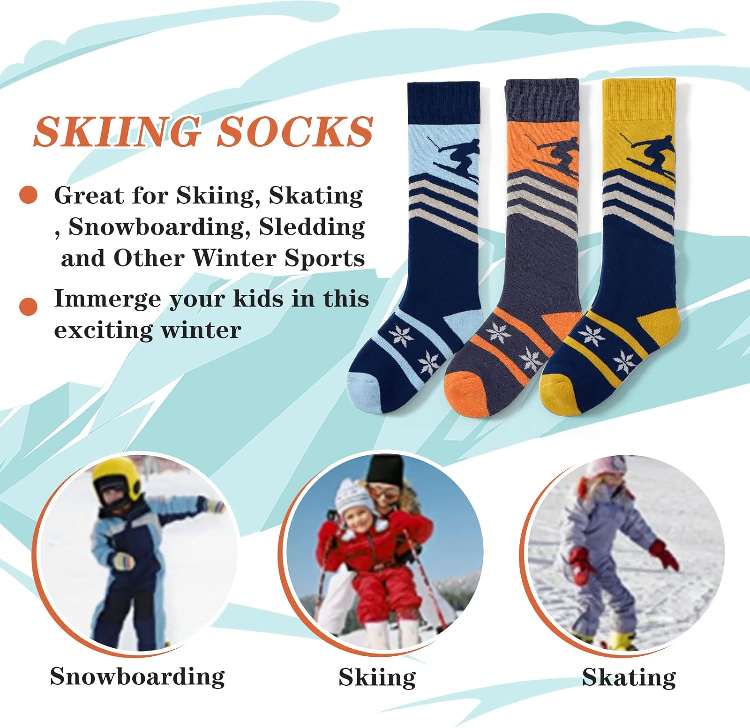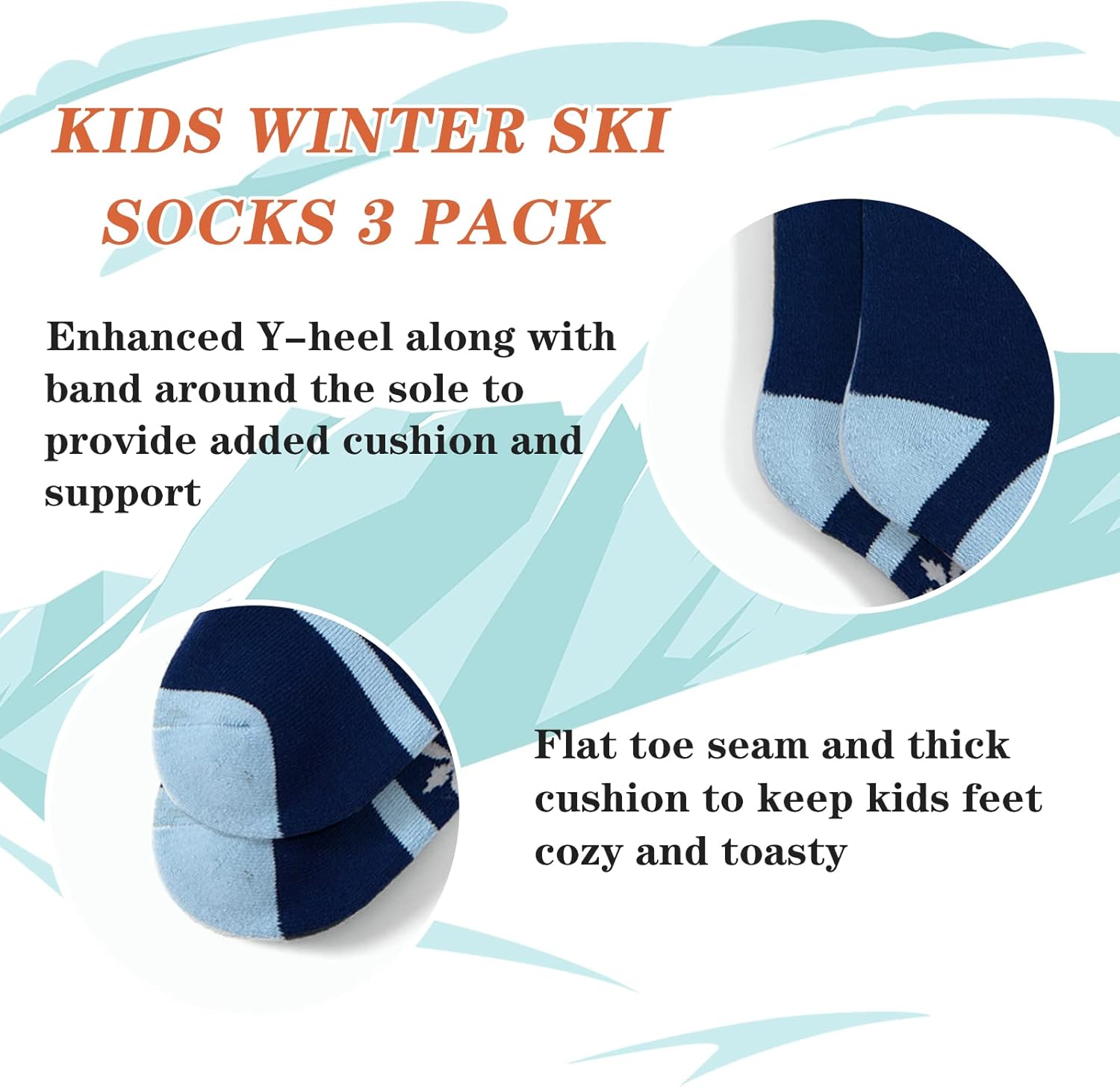 Unisex Children’s Warm Ski Socks Boys Thick Ski Socks Girls Thermal Socks for Ski and Snowboard 3 Pairs