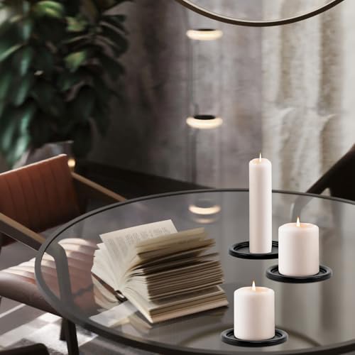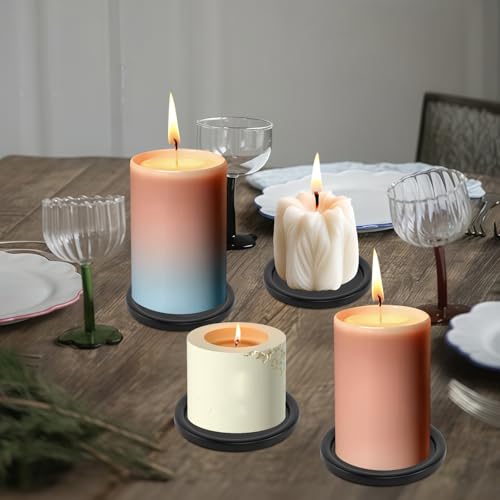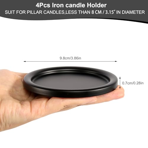 4 Stück Kerzenhalter Schwarz Kerzenhalter Stumpenkerzen Kerzenuntersetzer Tellerkerzenhalter Kerzen bis 10 cm Durchmesser Kerzenuntersetzer