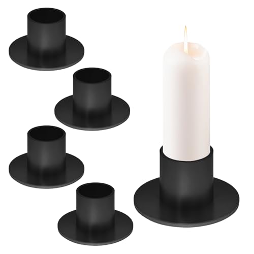 4 stück kerzenständer für stabkerzen aus robustem metall in schwarz. Diese kerzenhalter sind perfekt für weihnachten, halloween oder jede andere dekorative gelegenheit.