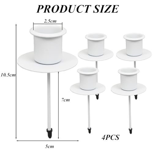 4X Kerzenhalter Adventskranz, Stabkerzenhalter Weiß mit Teller, Kerzenständer Stabkerzen, Adventskerzenhalter Metall Kerzenleuchter, Kerzenteller Tapered Candle Holders